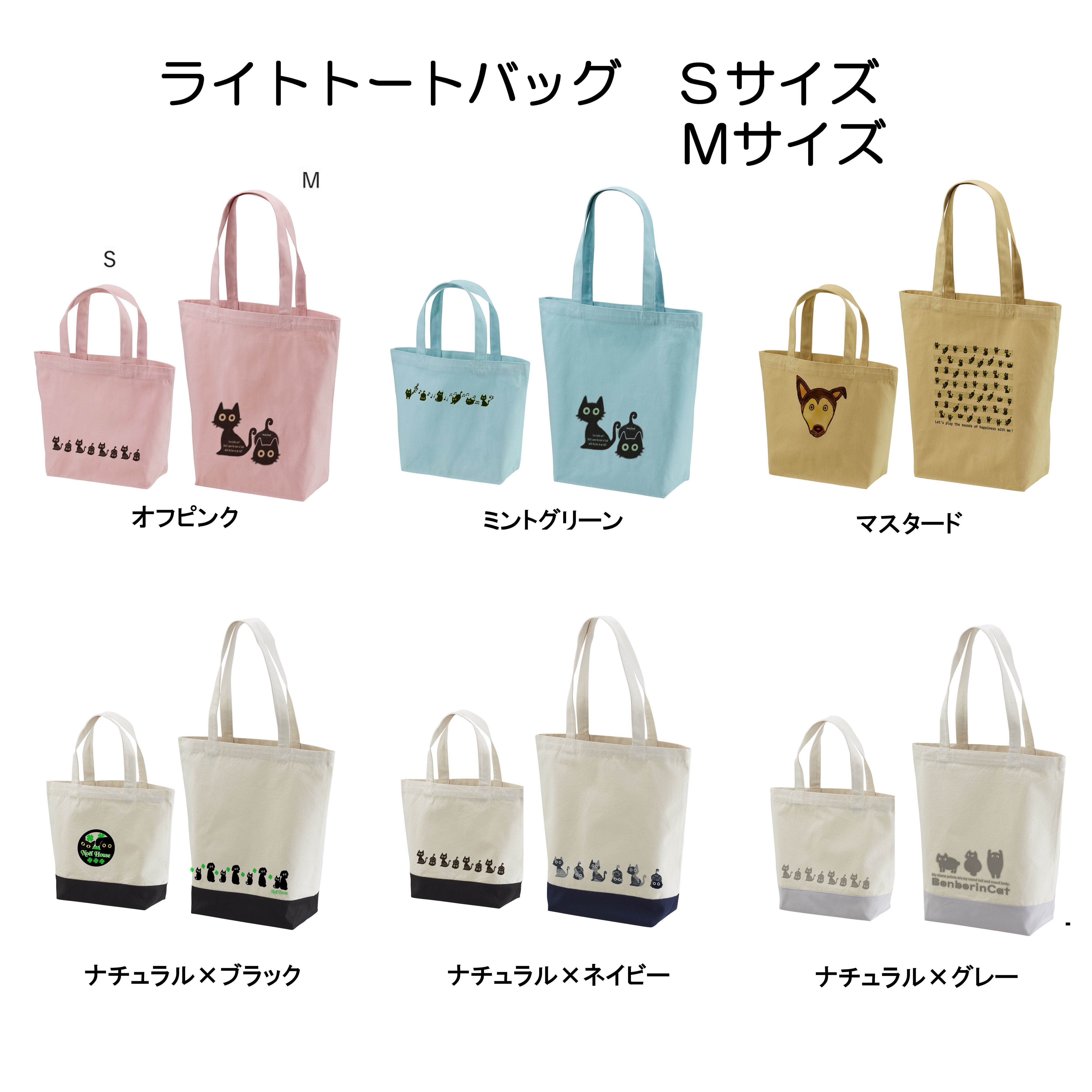 【ノエルハウス】ライトトートバッグ・ナチュラル×ブラック/Sサイズ